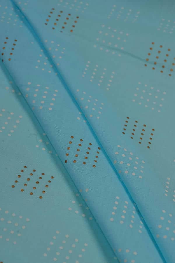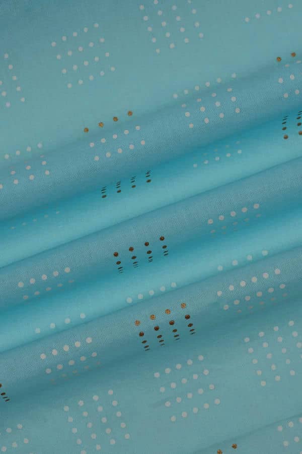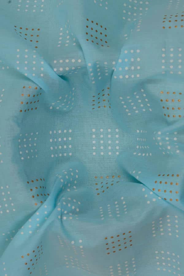 Our new floral cotton collection is perfect for this summer. It is a comfortable fusion of traditional screen print designs and embroidery work. With a myriad of options like embellished geometric, plain circles, floral motifs, paisleys, plaid, polka dots, patchworks, stripes, and more. The fabric is very durable, flexible, and soft. The Dotted Square Pattern screen printed on Cotton Fabric redefines the elegance of your outfit and enhances your grace. The unique color palette makes this perfect for Suits, lehengas, tops, blouses, designer dresses, indo-western, gowns, home decor, and accessories too.