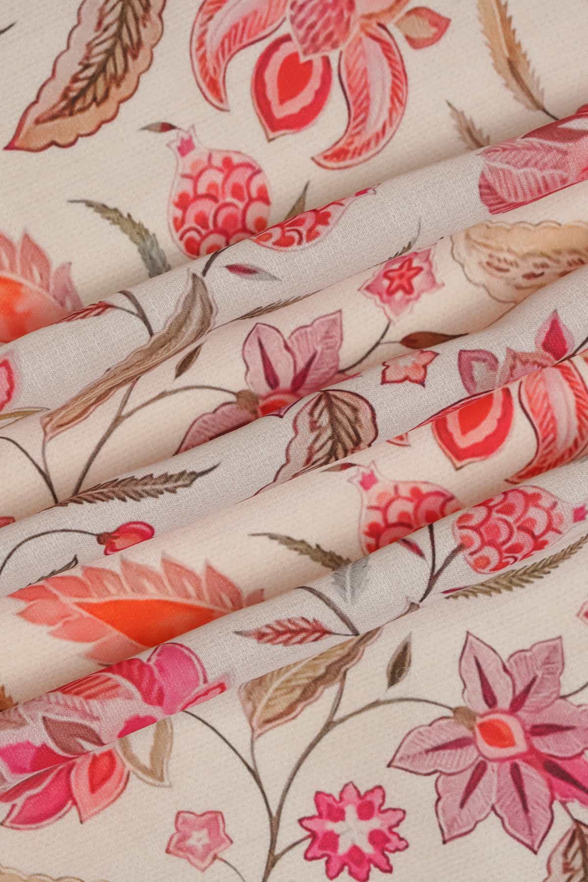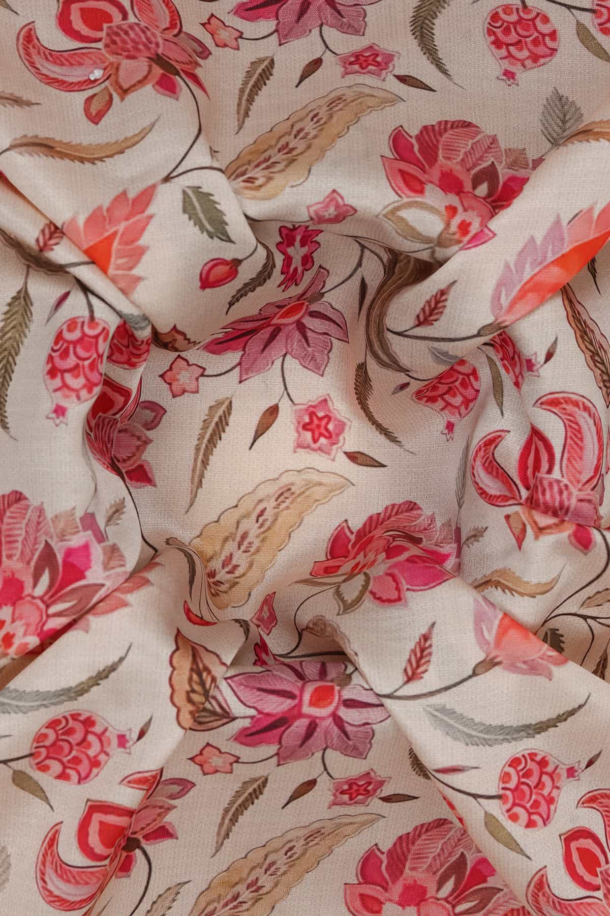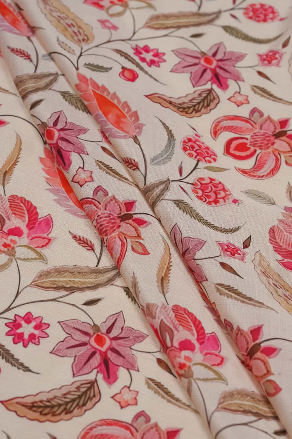 Sylvie Silk has a feathery texture that feels so soft and supple when touched, along with the glow that doesn't go unnoticeable. It is best for all walks of life women, as it is budget-friendly. Romantic flower print in pink hues embracing your feminine side featuring delicate and intricate designs that are both beautiful and eye-catching. This fabric is perfect for all your western fits like dresses, gowns, midis as well as for your traditional desires like kurtis or salvar suits. This chic plus elegant fabric is an essential to slick up your wardrobe.